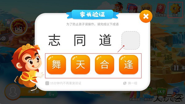 1、点击右上角的设置,根据孩子的需要设置功能。