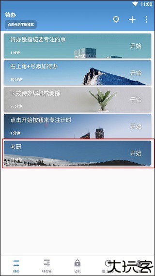1、在主界面,能看到系统预设好的几个待办计时,可以直接开始记录,也能直接删掉。