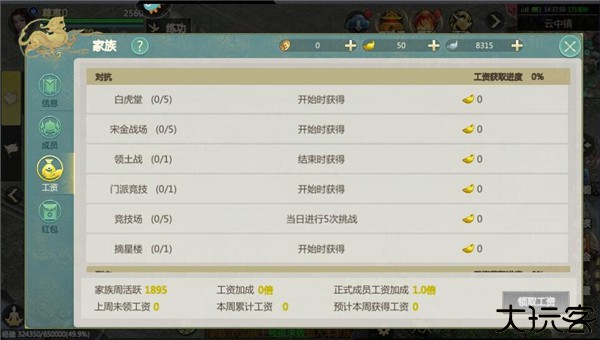 3、参与副本和家族任务后,玩家可以在工资处领取元宝奖励。