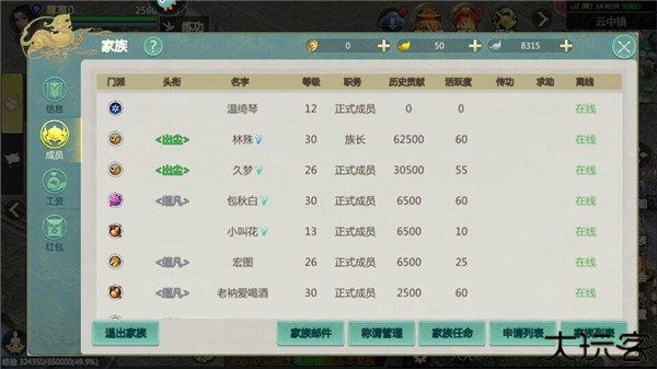 6、如果玩家加入的家族不活跃的话,可以进入成员界面,点击退出家族按钮即可。