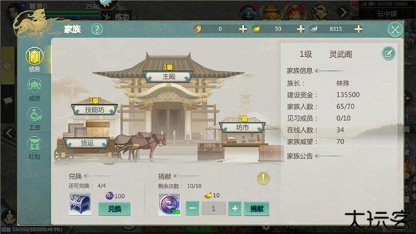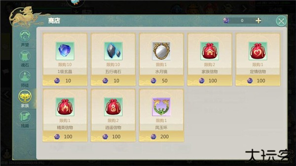 5、玩家还可以使用家族货币在商店去购买各种各样的道具。