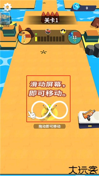 1、下载该游戏后,打开游戏之后只需要滑动屏幕即可移动。