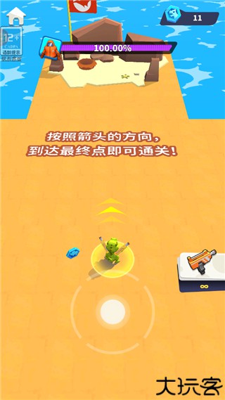 4、然后按照箭头的方向到达眼前的终点即可通关。