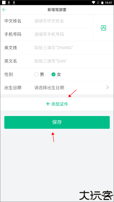 二、如何新增一名常用旅客的信息