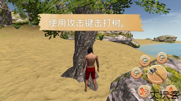 3、点击屏幕右下角的攻击键进行砍树行动。