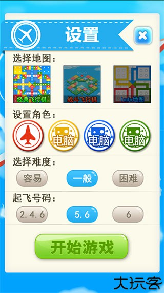 1、保留了传统飞行棋的核心玩法,通过掷骰子决定飞机行进的步数。