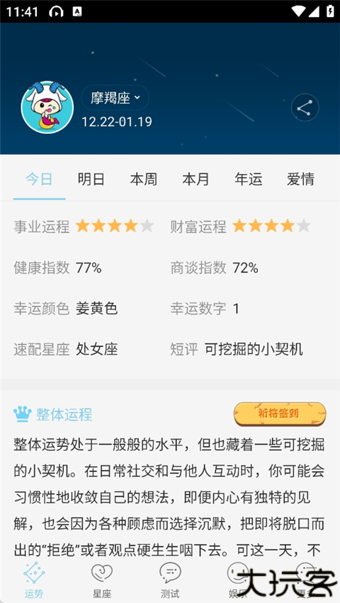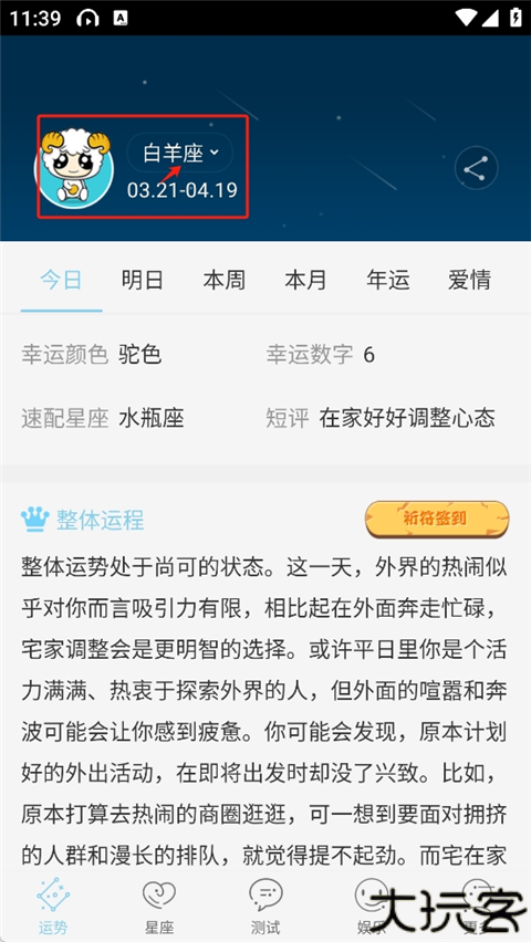 4、可以很好的去预测各个星座的运势情况反馈到手机内,随时查看。