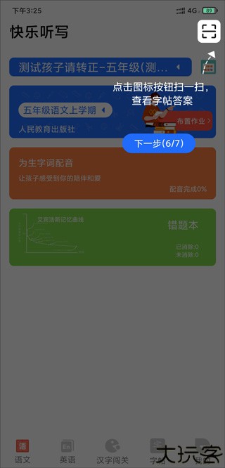 6、通过扫描功能,直接获取纸质字帖的正确答案。