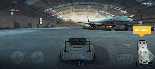 5、游戏准备开始后,屏幕左侧是控制漂移的方向,右下角则是刹车和油门。