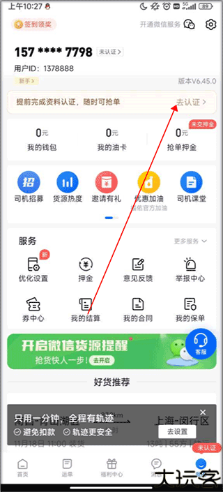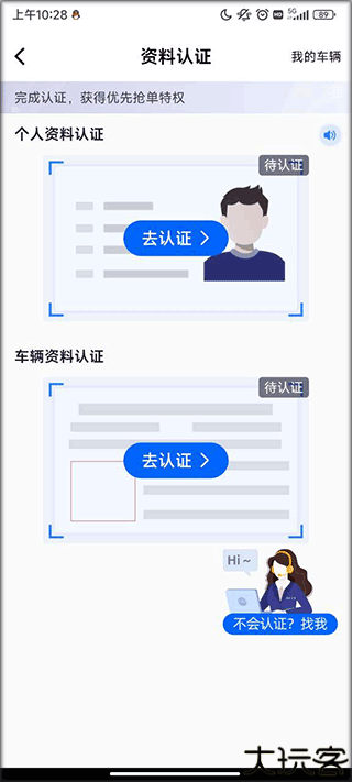 2、在“我的”页面中点击“去认证”开启流程。