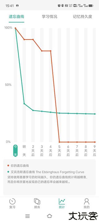 通过数据统计可查看忘记概率、保持记忆程度,评估复习计划是否有效。