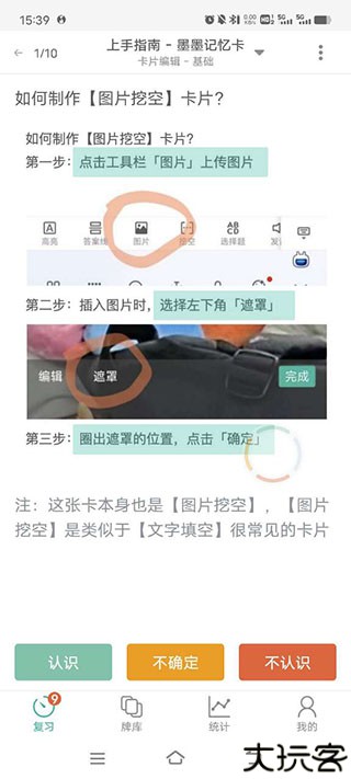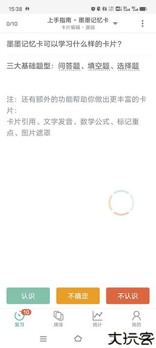 题型以问答为主,通过“掌握/模糊/不熟悉”反馈,系统将智能判断记忆状态。