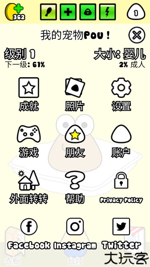 从零开始抚养Pou,满足其吃喝和日常需求。