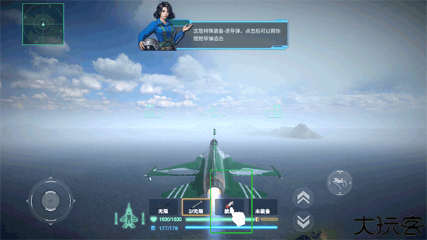 5、屏幕中间的按钮是特殊装备,点击之后就可以帮助玩家摆脱导弹追击。