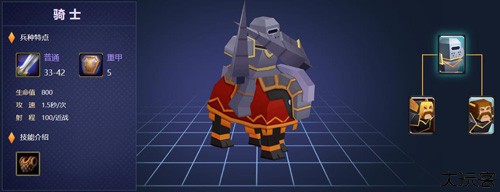 嗜血骑士高输出,肉度一般,被动加攻速和吸血是他输出核心,开局裸出单挑能力较强但也好多打不过,适用面较窄,萌新可用兵种较少可出。