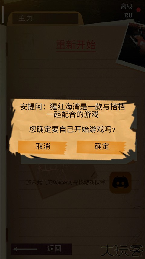 3、本游戏是一款与搭档一起配合的游戏,所以玩家最好找同伴一同游玩,然后点击确定。