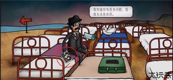20、打开手提箱,拿走轮船照片,当开关手提箱到第18次时会出现一张时间纸条,第99次可以达成一个成就:光阴似箭,多次点击白色鸽子,可以达成成就:坚持不懈。