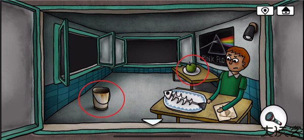 4、在想吃鱼的男人房间里,捡起地上的铁桶。