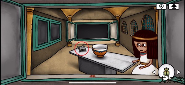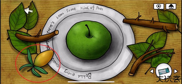 14、来到电视机下面的房间,捡起左边的星星符石,将蜣螂,橄榄,蓝色羽毛放进碗里。