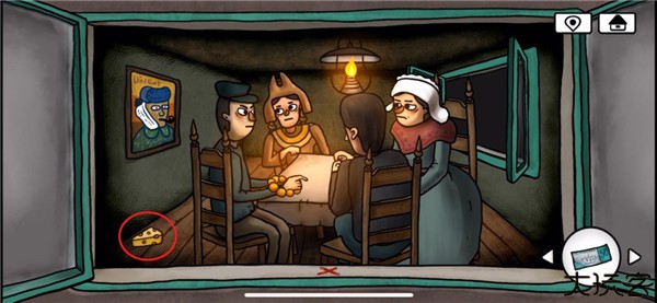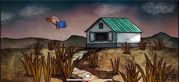 15、蹦出来一只小鸟,刚好挡住了切换房间的按键,进入左边房间,捡起地上的奶酪,喂给小鸟后可以来到小屋外面。