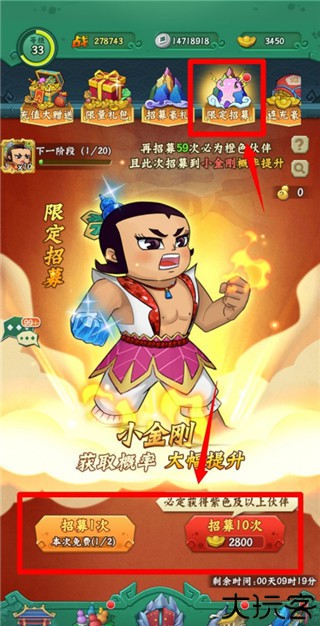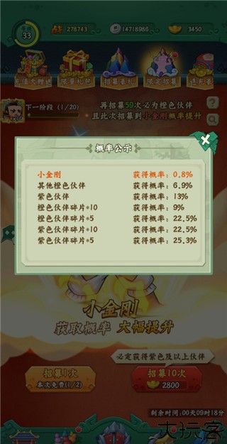 4、小金刚的获得几率也是比较低的,多次的参与之后会得到这个角色。