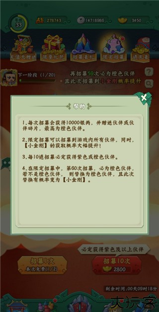 3、会有一定的几率获得碎片和其他的角色或者获得一定数量的银币奖励!