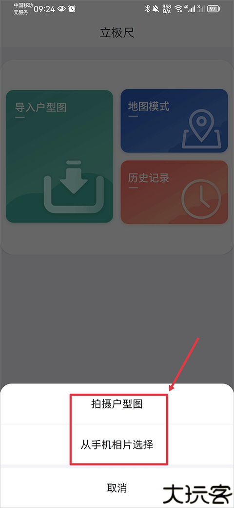 2、用户选择亲自拍摄户型图或从手机相片选择两种方式。