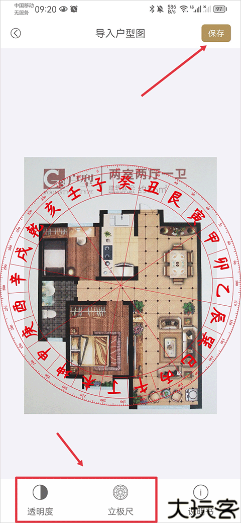 3、成功导入后,用户还可以调整罗盘的透明度和颜色,接着点击右上角的保存按钮即可。