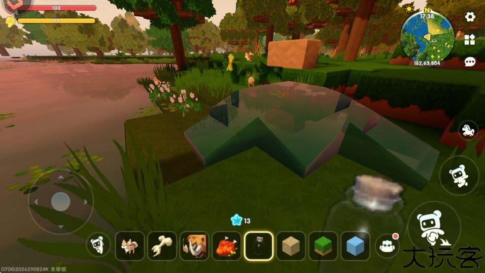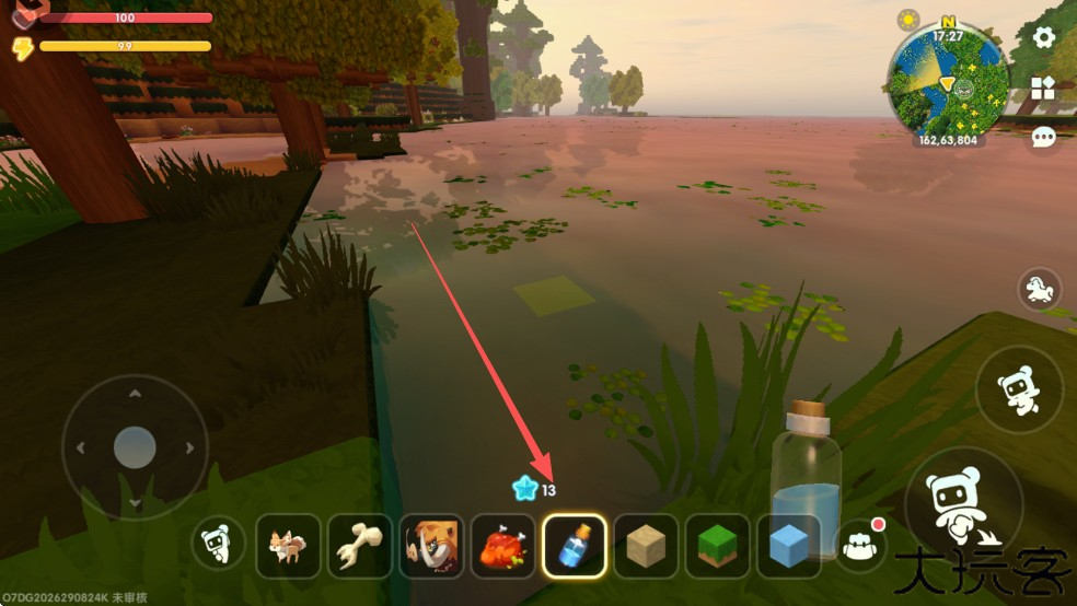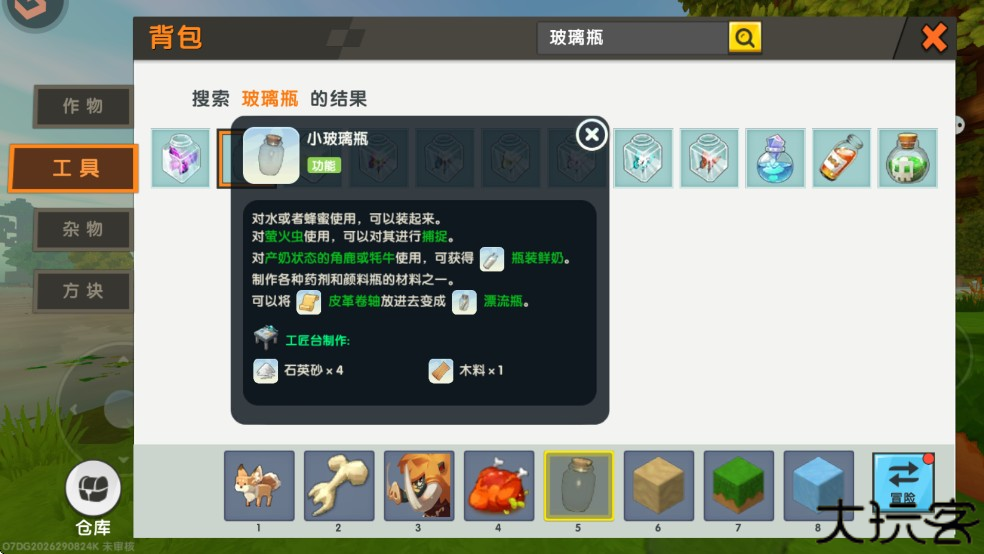 2、制作好小玻璃瓶后,点击物品,然后走到水域旁边,点击水域使用