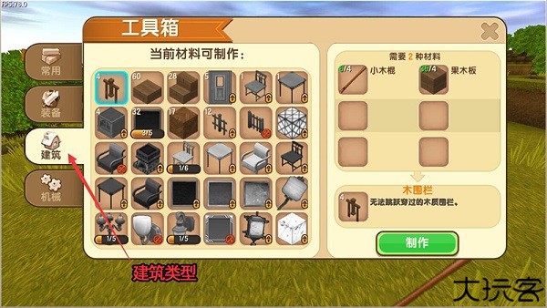 建筑类型:这里可以制作建筑需要的方块、灯、和家具等等。