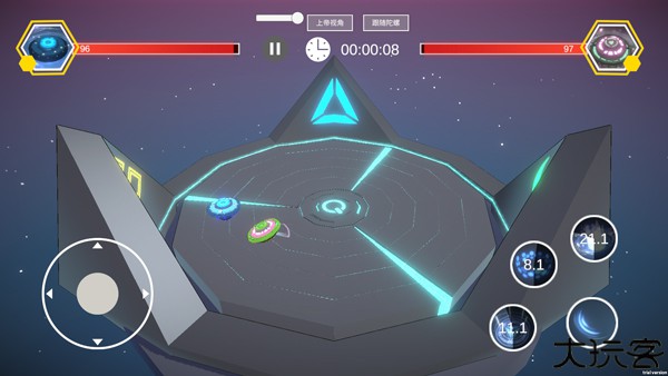5、玩家可通过左侧轮盘来控制陀螺移动,右侧则为技能键。