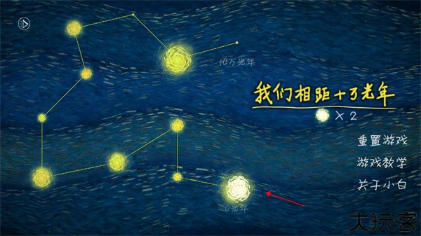 5、玩家要积累白星星到黄星星间的距离直到一万光年。