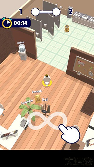 3、而躲藏者就可以变身成各种物品躲避追捕,滑动屏幕就可以移动并寻找地方躲藏。