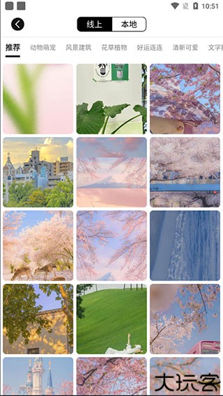 平台提供多种高清风格壁纸,也可从手机本地图库中添加图案。