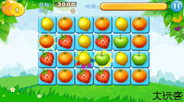 三个或以上相同水果连起来就能得分,操作上手快。