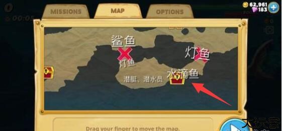 1、在初始海域中可见水滴鱼,多藏身于深海裂缝附近区域。