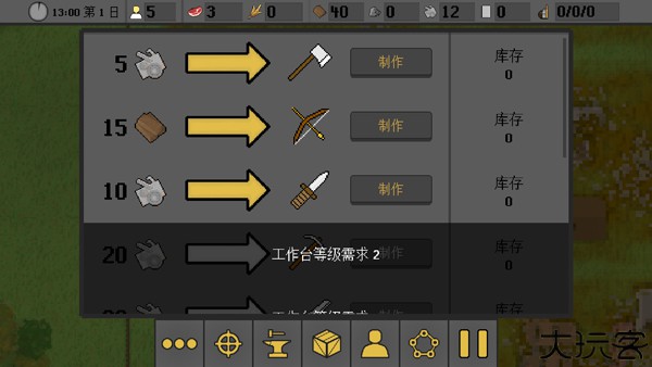 6、玩家还可收集材料制作斧头、弓箭、匕首等武器进行狩猎和防守。