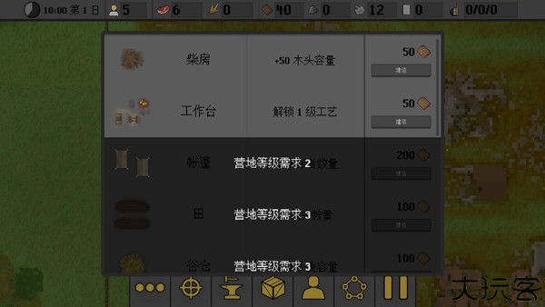 5、玩家可在空地上建造柴房、工作台等建筑,而且随着营地等级提升,可建造的建筑也会越多。