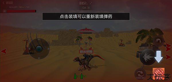 3、瞄准敌方恐龙,按下射击立刻输出,弹尽需点击装填补充。