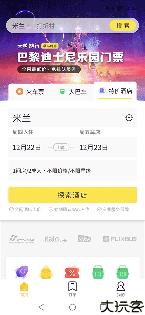 1、首页点击“探索酒店”进入,查看限时优惠房源。