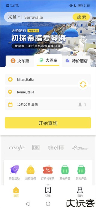 1、进入首页选车票类型,点击“开始查询”即可进入服务页面。