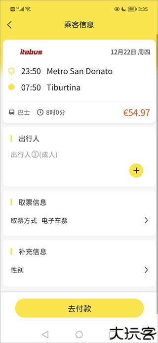 4、添加乘客数据与出行方式后,确认订单并付款。
