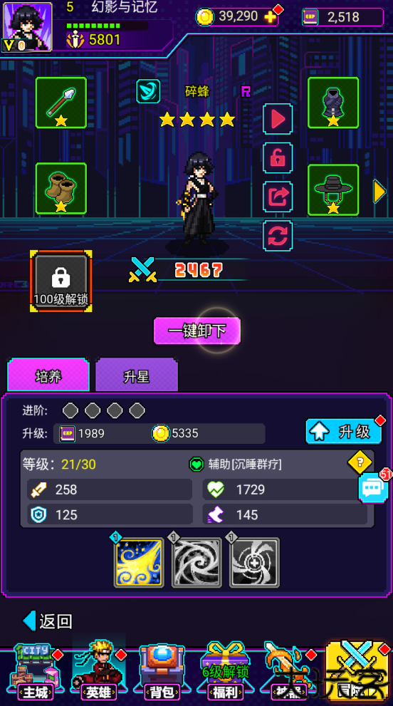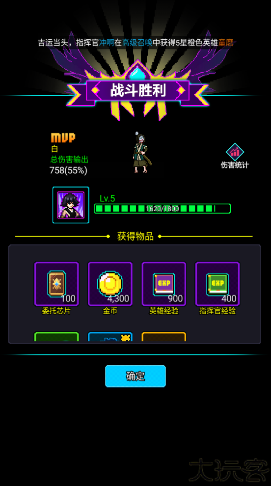 3、通过副本推图获取角色经验和英雄经验,提升英雄等级。