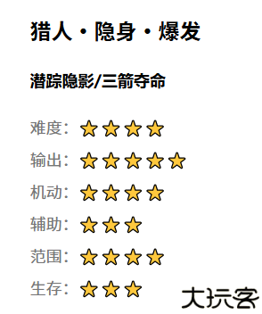 高爆发远程刺客,善用隐身与陷阱,单体狙杀能力极强,竞技与挑战BOSS都能发挥优势。