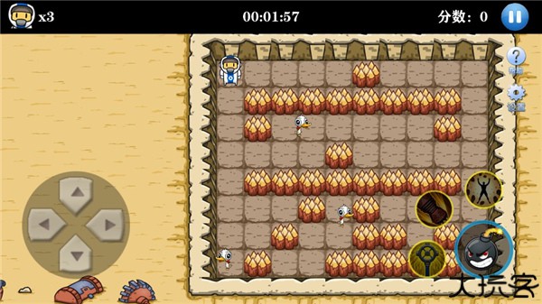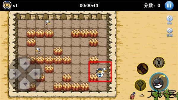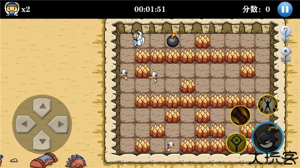 2、左侧是控制角色移动的摇杆,右侧是炸弹按键。
