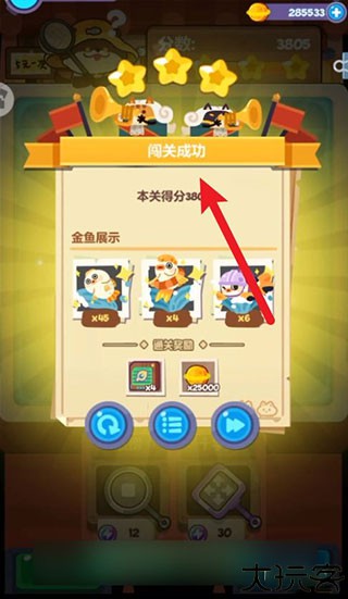 4、完成捕捞后直接结算,即算成功通过关卡。
