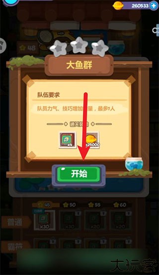 1、启动妙奇星球最新版本,进入大鱼群界面后选择开始钓鱼;