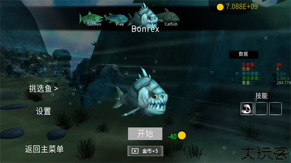 6、不同鱼种给予的等级也不同,玩家可以进食体型大的来快速提升等级。