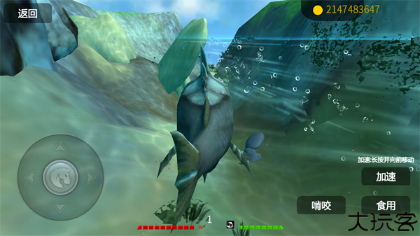 吃掉其他鱼类,持续成长,探索美丽的深海世界。