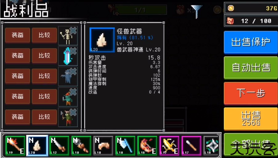 2、可以通过购买、出售、改造装备来提升角色的战斗力。